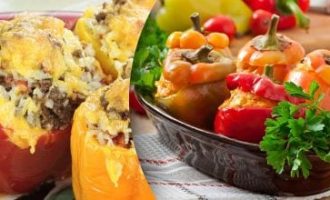 מחממים את התנור ל-200 מעלות. מקלפים תפוחי אדמה, בצל, גזר ושמפיניון. חותכים את תפוחי האדמה לקוביות, בצל לחתיכות גדולות, גזר לפרוסות; עגבניות – לפרוסות, ופטריות – לארבעה חלקים.