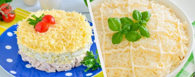 במנה זו קוצצים דק את החומרים, מונחים בשכבות נפרדות ונמרח במיונז. חובבי השילוב של בשר ופירות יכולים להוסיף למתכון אננס, תירס או ענבים.